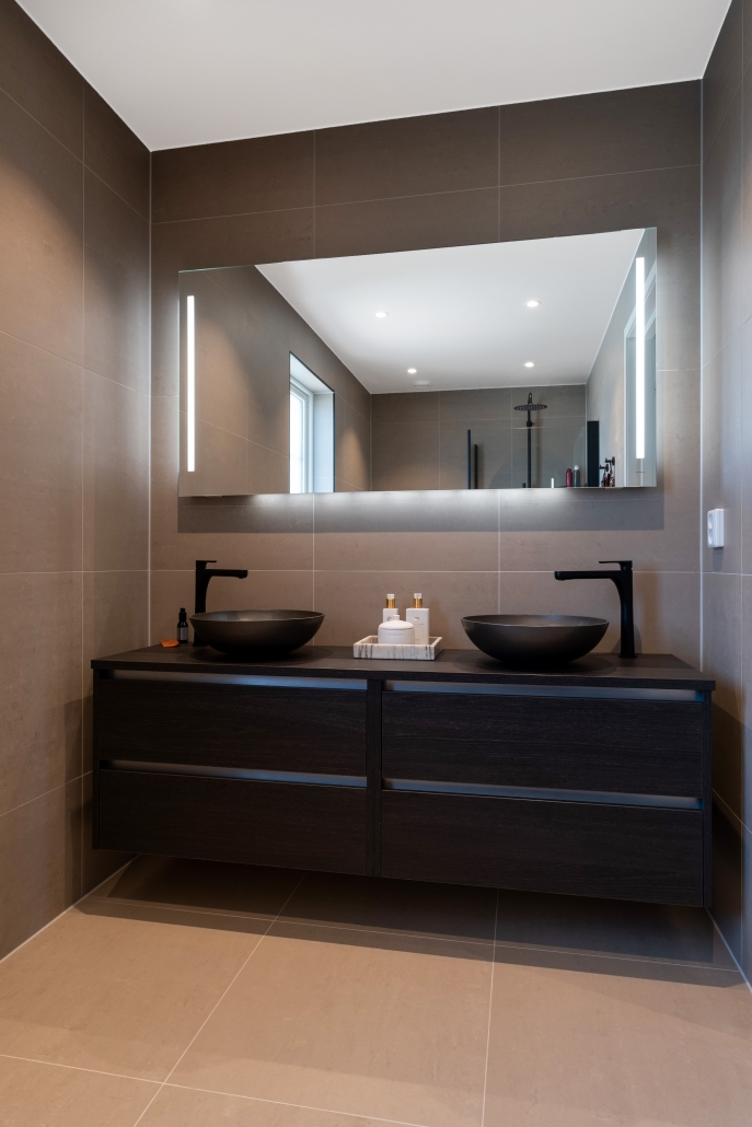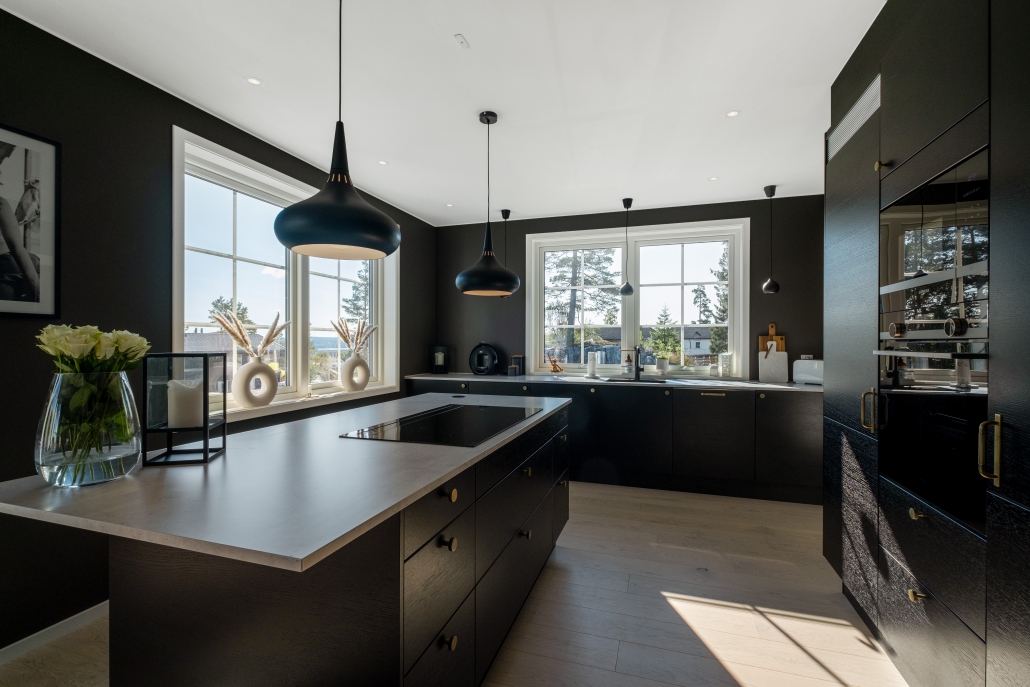 Utvendig kledning fra Hasås AS, vinduer/balkongdører fra Uldal AS, dører fra Swedoor AS, trapp fra Trapperingen – TreTrapp AS, peisovn fra Schiedel Skorsteiner AS, parkett fra Kährs Norge AS, fliser fra Norfloor AS, ventilasjon fra Flexit AS, takstein fra Monier AS,