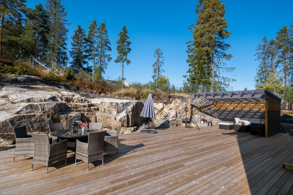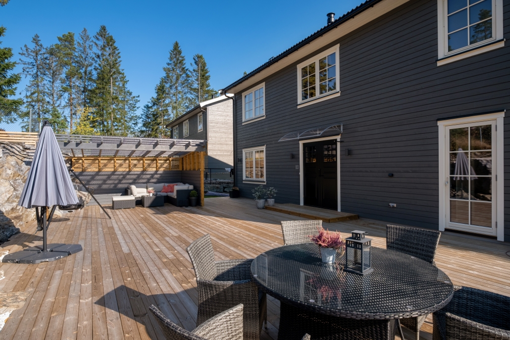 På en solrik tomt med utsikt over Øyeren ligger åtte store, klassiske eneboliger fordelt over tre etasjer. Hver bolig er romslig og familievennlig, med innebygd garasje og egen utleieleilighet som gir fleksibilitet og mulighet for ekstra inntekt.